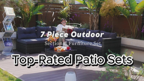 Segmart 4-Piece Rattan Wicker Sofa Set with Cushions, Glass Table & Storage Box