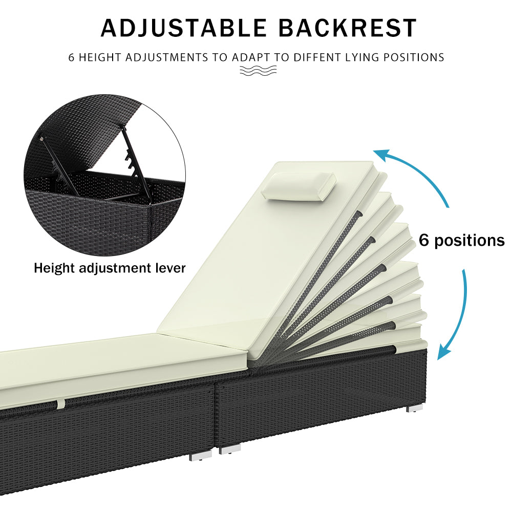 [Adjustable Reclining] - Convenient adjustable backrests allow you to choose from 6 different positions from sitting up, to lounging back, to lay down completely. You can enjoy a comfortable nap or rest on this chaise as the heavy-duty steel tube construction surely accommodates your body stably and steadily.