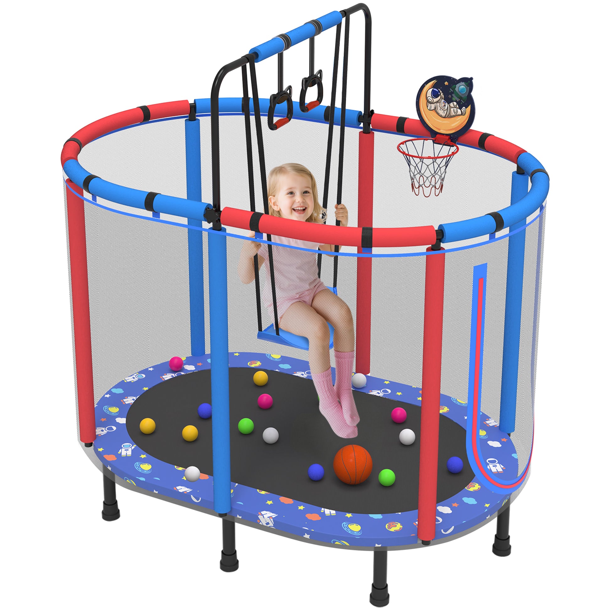 🏆 4X ACTIVITIES — Swing/jump/play basketball ball/climb in kids trampoline for indoor