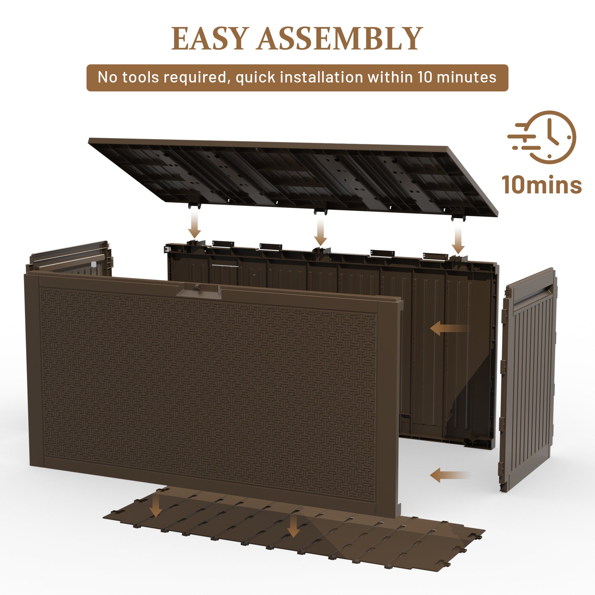 【CONVENIENT DESIGN】Our deck box comes with handle on each side, you can easily put it in any position. In addition, the double hydraulic gas rod design makes it open easily or close slowly, and prevents hands from getting clamped. The lockable function can protect the safety of internal articles.
