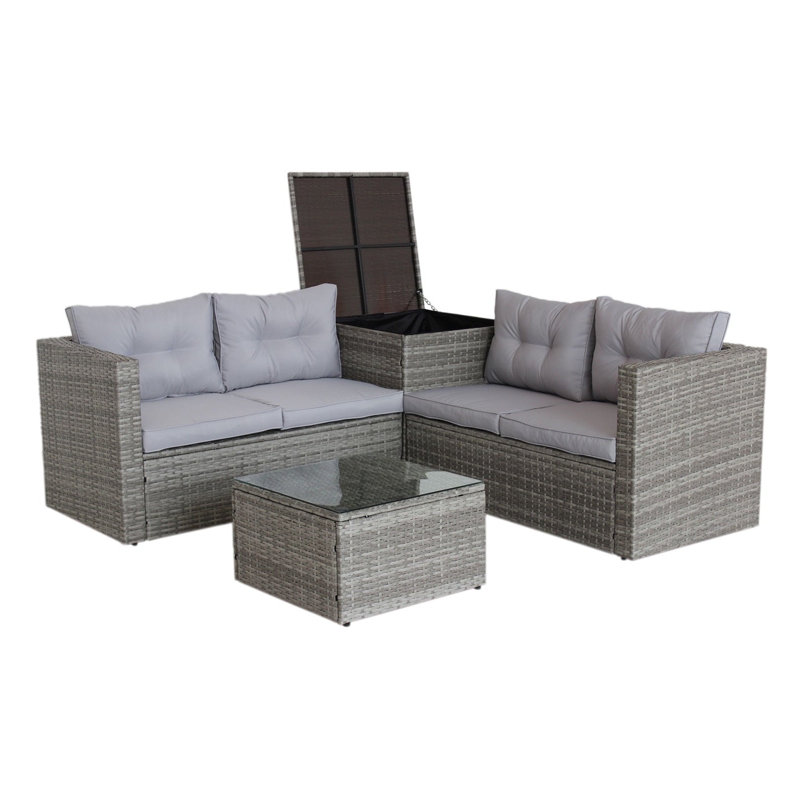 The 4 pieces outdoor sectional patio furniture set with 1 storage box and 1 coffee table for storing other odds. The outdoor patio furniture sets add a touch of elegance and style to your patio, garden, backyard, porch, sunroom or pool.