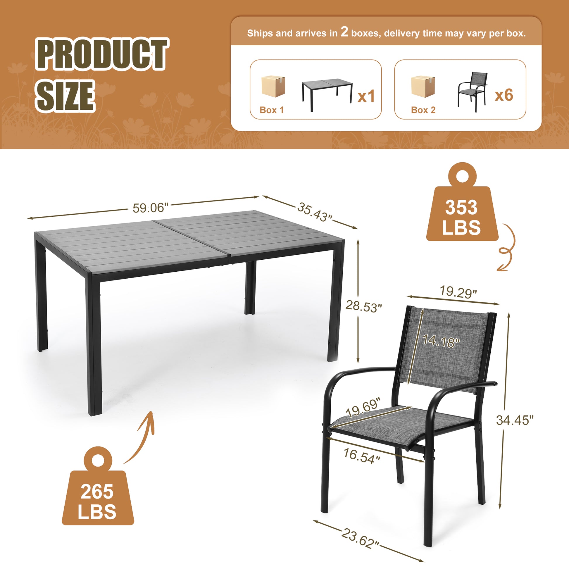 Patio Dining Set, 7PCS Outdoor Plastic-Wood Table & Textilene Chairs Set, Outdoor Furniture Dining Table Set, Garden Porch Backyard Poolside Sectional Conversation Set