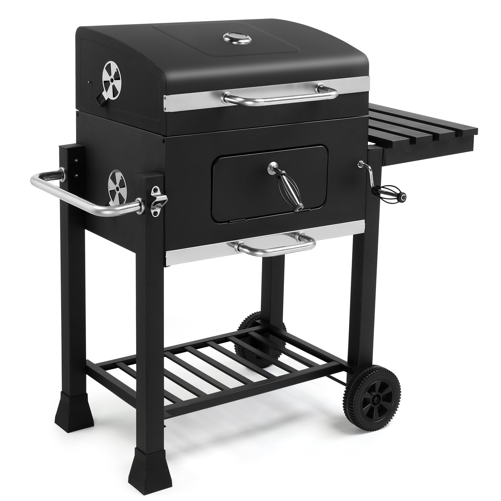 Enjoy Perfect Outdoor BBQ Moments Anytime, Anywhere Bring family and friends together for unforgettable outdoor feasts with our Heavy-Duty Charcoal Grill — ideal for backyards, patios, picnics, and camping cookouts. Engineered for powerful performance and effortless control, this grill delivers smoky flavors and perfect sear marks every time. With its large cooking surface, adjustable charcoal height, and easy mobility, it’s built to handle anything from juicy steaks to tender vegetables — all while keeping your prep organized and your grilling smooth. Features: 1. Spacious Cooking Area: Enjoy a generous grilling surface with a large main cooking area and an elevated warming rack, perfect for family parties and gatherings. The thickened chrome-plated grates are rust-resistant and durable, ensuring long-lasting use and easy cleaning. 2. Height-Adjustable Charcoal Pan: Customize your cooking temperature effortlessly with the height-adjustable charcoal pan, operated by a convenient crank handle. The full-size ash tray catches ash, grease, and food residue, helping to achieve perfect heat control from high to low and keeping your deck protected. 3. Precision Heat Control: Master your barbecue with dual air dampers on the sides and lid for precise airflow control. The built-in, easy-to-read thermometer allows you to monitor internal temperatures accurately, ensuring perfectly cooked food every time. 4. Convenient Charcoal Access: The front charcoal door with a cool-touch handle makes adding charcoal during cooking easy and safe. This feature minimizes heat loss, allowing for efficient and uninterrupted grilling. 5. Versatile Prep and Storage Space: A foldable side table offers extra workspace for seasonings and tools. Handy hooks keep your grilling utensils, towels, and garbage bags within reach. The additional bottom shelf provides ample storage for large barbecue tools and charcoal, while the durable wheels make it easy to move the grill wherever you need it. Specifications: 1. Material: High-temperature Powder Coating, Chrome-plated Iron Grates 2. Dimensions: (45.7 x 22.4 x 42.5) in / (116 x 57 x 108) cm Package Includes: 1 x Charcoal Grill