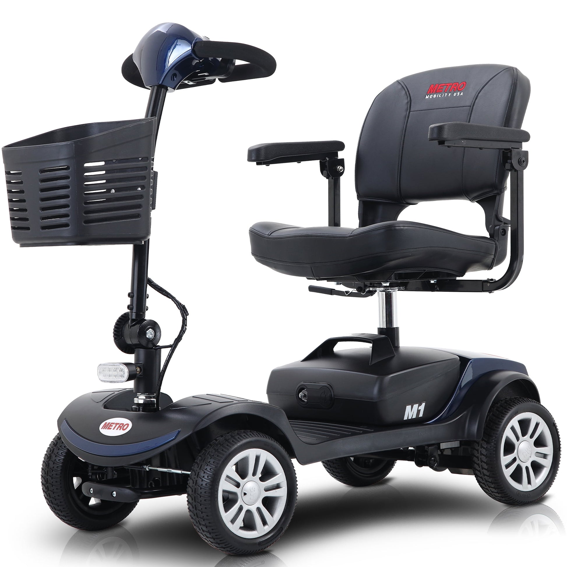 - Durable 9 Inches Tire - Our mobility scooter is equipped with a headlight and rear brake light, which can light the road at night and warn the drivers behind. The 9'' x 3'' wheels are solid and flat-free, so the advantages of resisting prick and burst are better than a normal wheelchair. It’s more durable and has a longer service life.