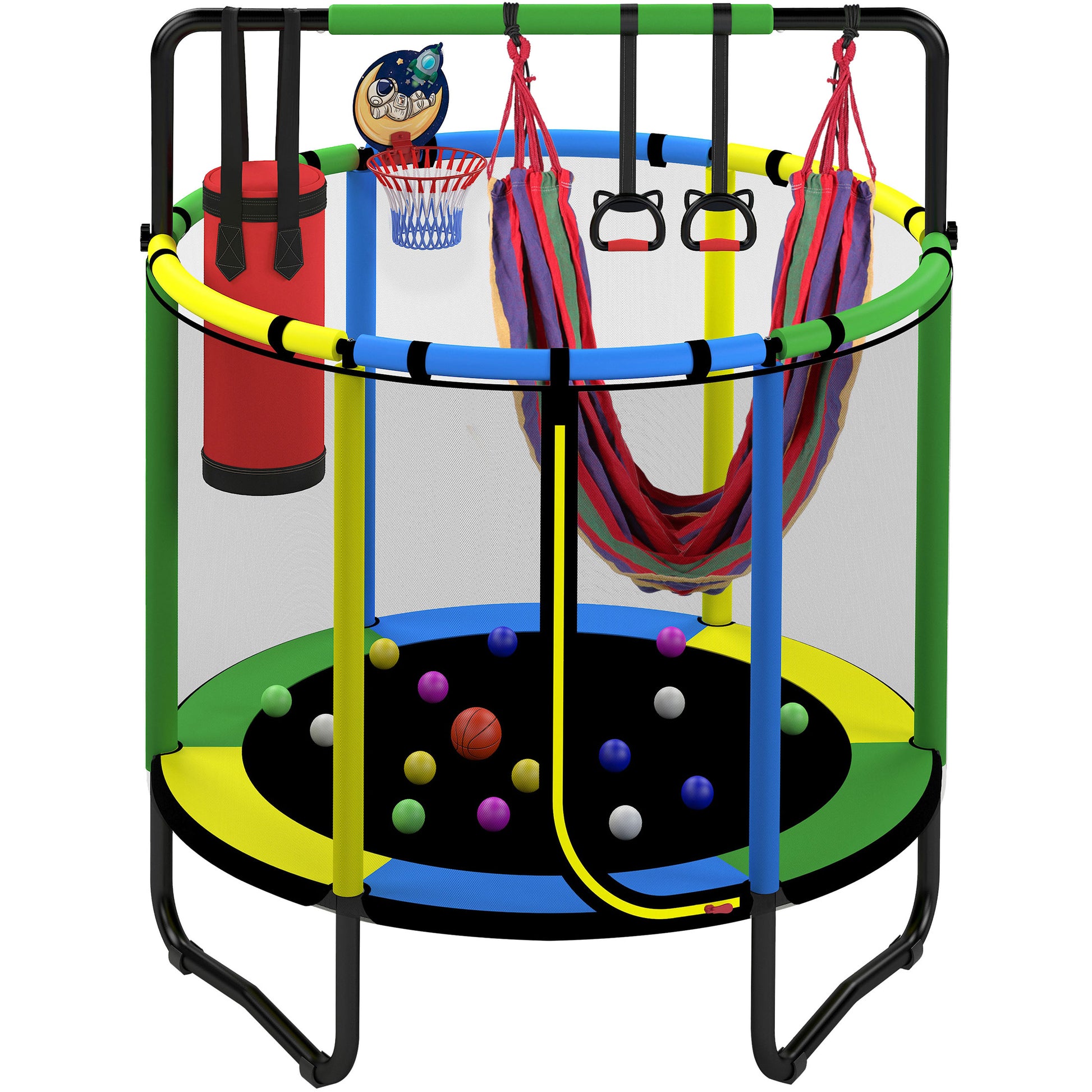 🤸 Maximum Safety – Reinforced safety net & foam-padded poles for worry-free play.